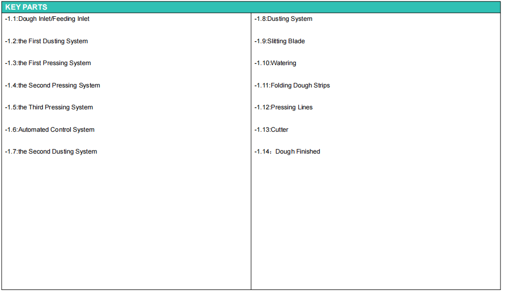 -The pressed dough strips are cut into multiple smaller strips by a slitting mechanism, and then pre-pressed, rolled out, and corrected to ensure that each strip is the same size and shape.